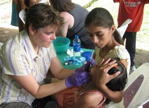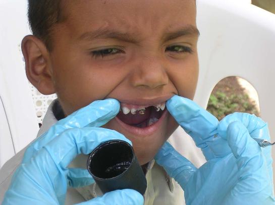 giving each patient a toothbrush, toothpaste and a toy.